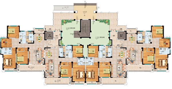 突出入戶大堂、小區(qū)入口。廣場(chǎng)地面雕刻出方磚鋪地,運(yùn)用人工分色處理,打磨噴涂上色;點(diǎn)綴一些汽車、行人、休憩椅、雕塑小品及各種植物等環(huán)境配套設(shè)施使商業(yè)廣場(chǎng)更添休閑味道,環(huán)境更加豐富。并在廣場(chǎng)設(shè)置地?zé)艏盁艄庖栽黾幽P鸵咕靶ЧT诳傮w協(xié)調(diào)的基礎(chǔ)上,盡量提高空間感和視覺效果,按照實(shí)際施工尺寸適當(dāng)拉寬環(huán)境及建筑樓距,適當(dāng)放大中心園林空間,以獲得更感性合理的模型視覺(多設(shè)置公園椅、庭園燈、樹木等),充分體現(xiàn)出城市自然與人文環(huán)境相互融合的特性。